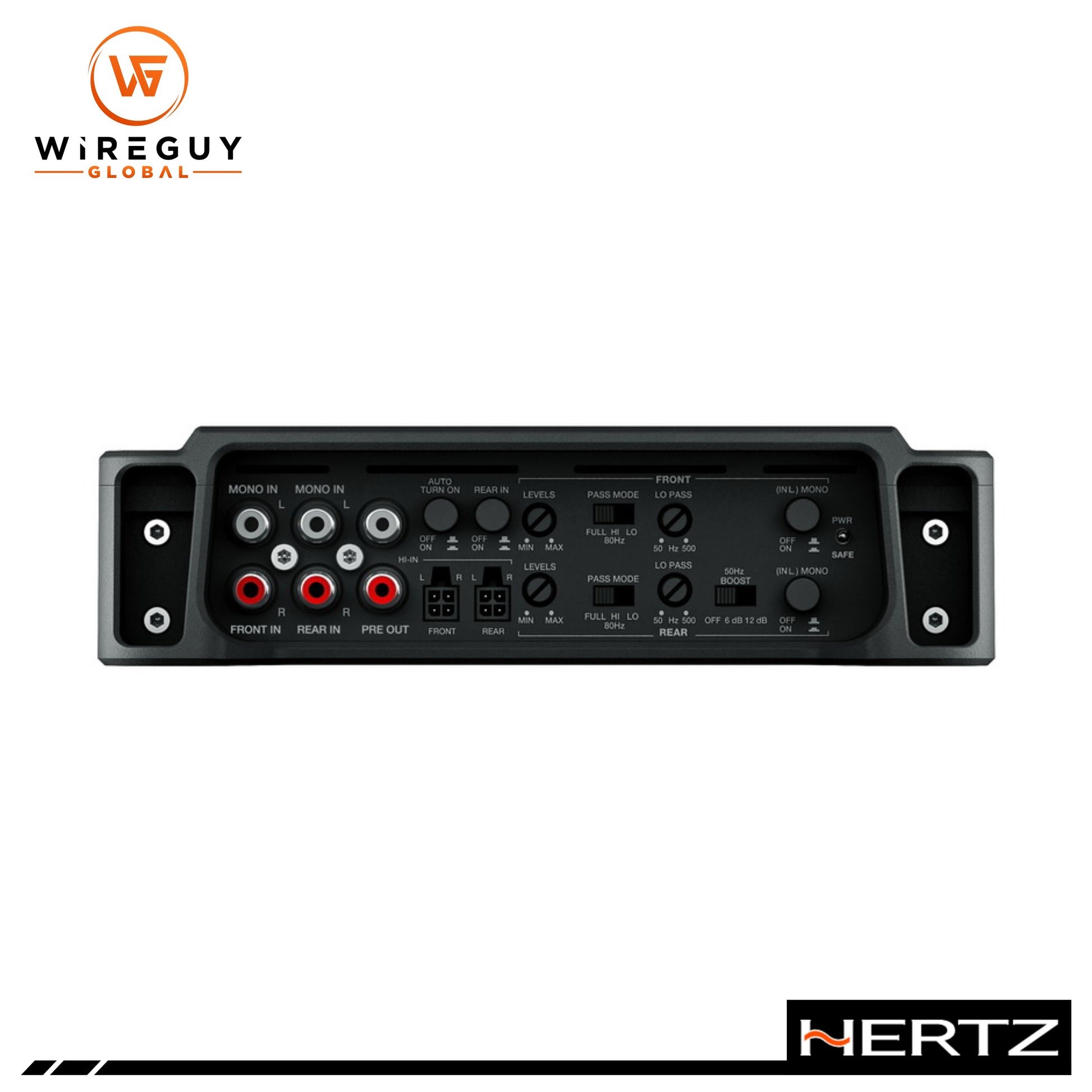 Mono Buttons: Use the mono buttons on the front and rear input channels to power four speakers from just two inputs for ease of installation.