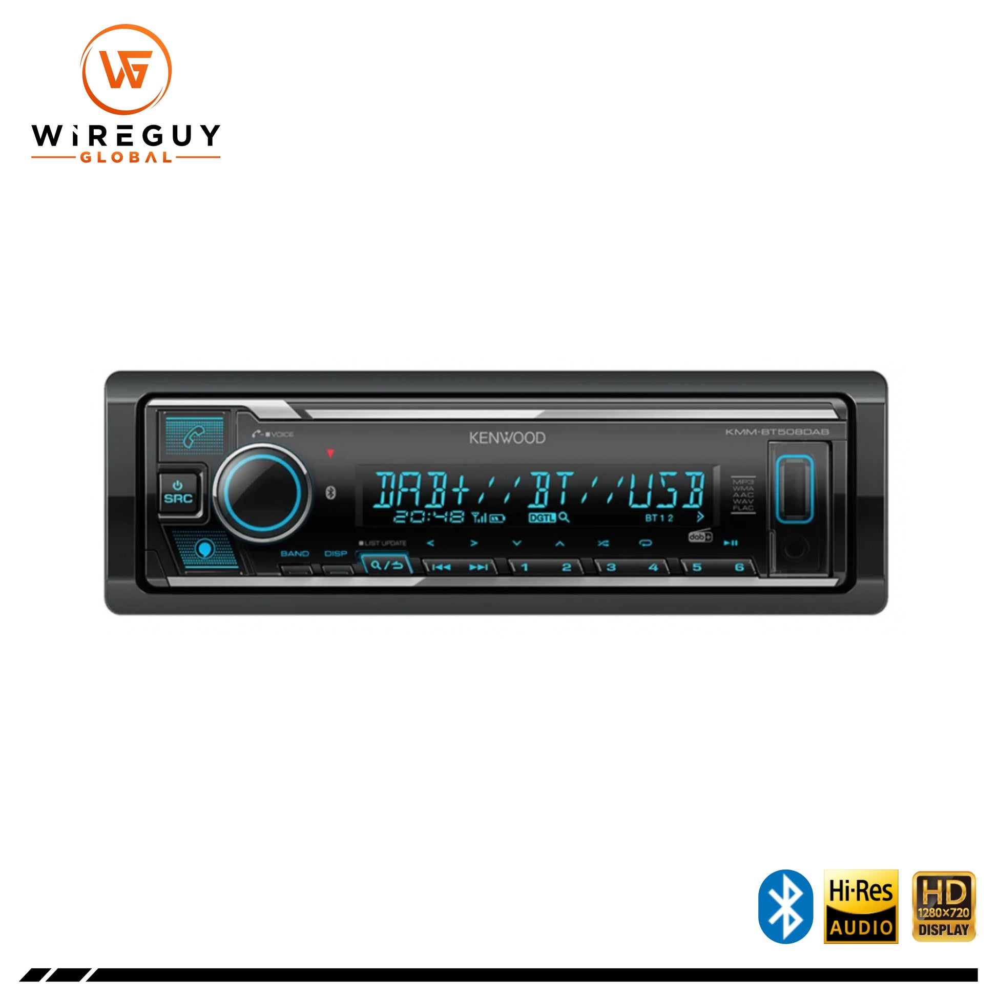 The Kenwood KMM-BT508DAB Digital Media Receiver is your all-in-one solution for premium car audio with advanced radio features, Bluetooth connectivity, and powerful sound customization options. Upgrade your ride with clear digital radio, seamless music streaming, and hands-free calling—all backed by Kenwood's trusted audio engineering.