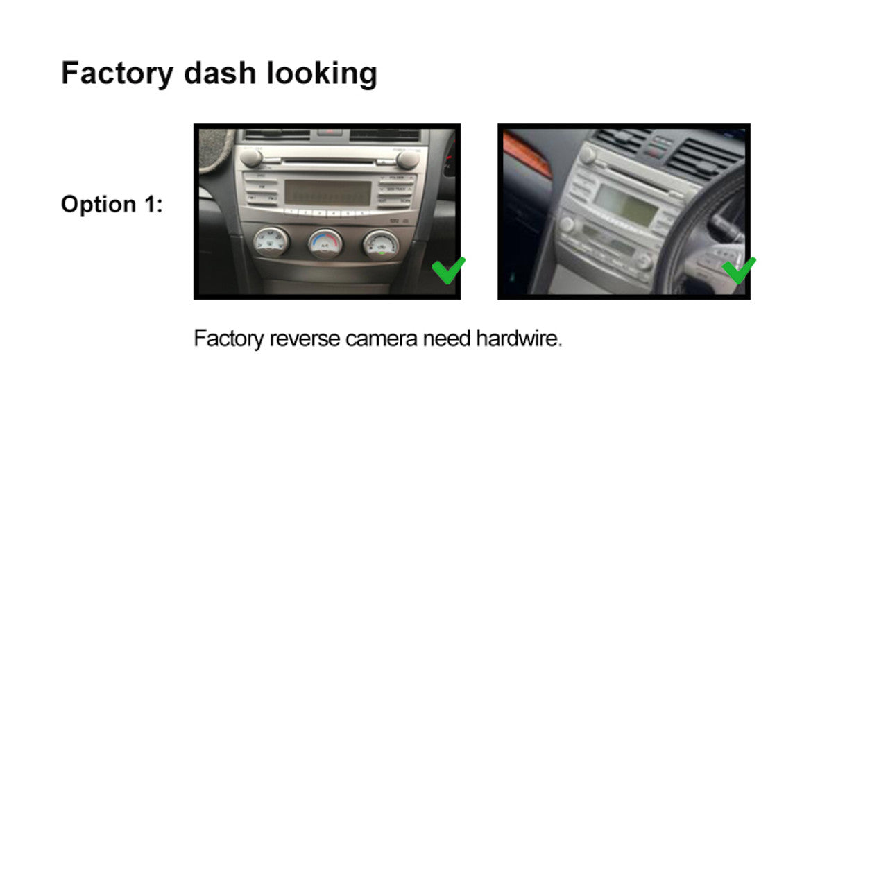 - Factory reverse camera requires hardwiring.