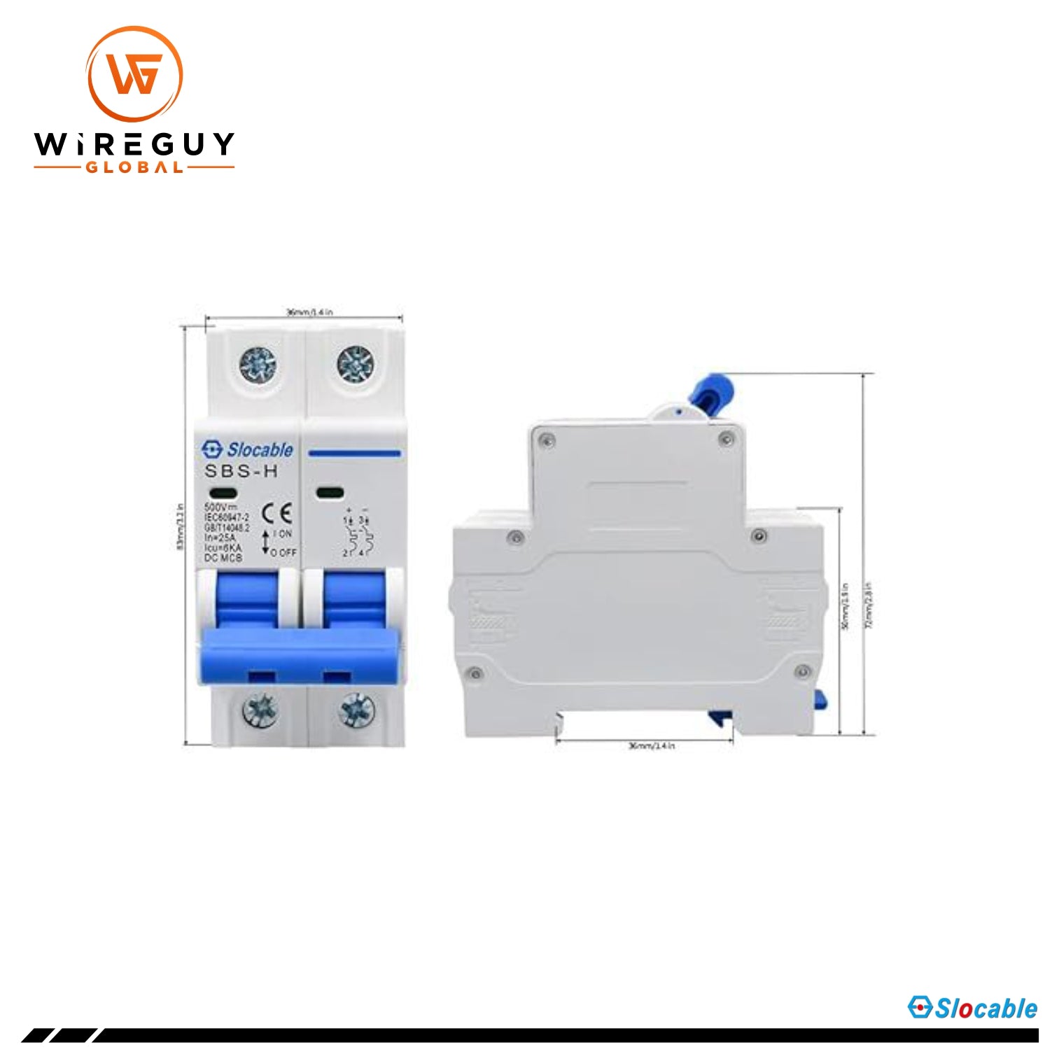 Slocable MCB 500V 2P 25A - DC Solar Isolator